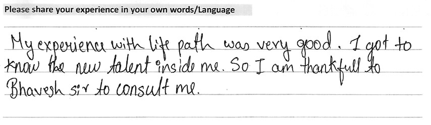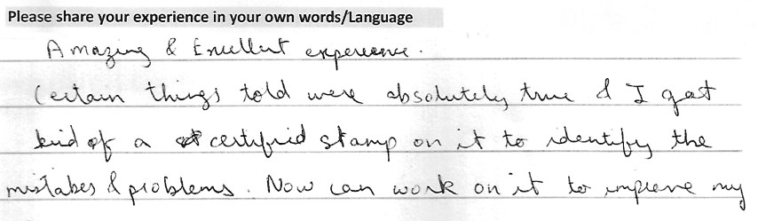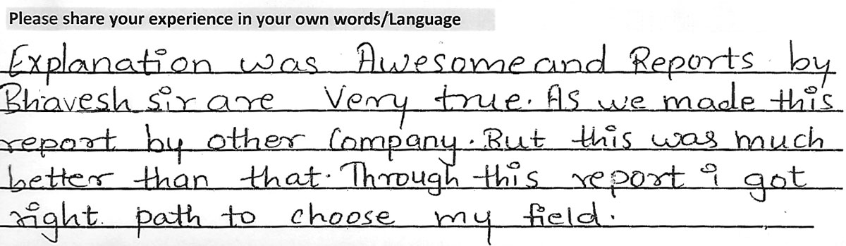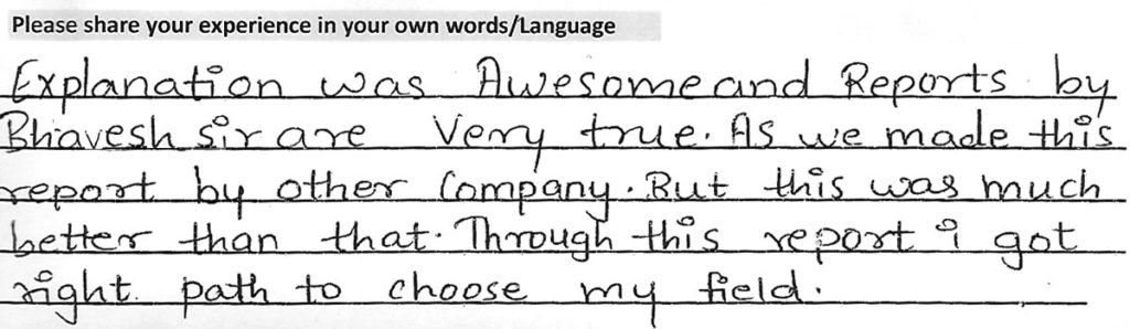 Testimonialspixelesolutions2019-04-08T13:09:37+00:00 1 Harsh A. Darji (Borivali) Concept Explanation – Excellent Details of the Report – Good Consultation – Excellent Remedial’s Proposed – Excellent Life-Path Experience – Excellent Accuracy – 90% Rohan R. Bhatia (Lower Parel) Concept Explanation – Excellent Details of the Report – Excellent Consultation – Excellent Remedial’s Proposed – Excellent Life-Path Experience – Excellent Accuracy – 90% Rahul P. Sawan (Borivali) Concept Explanation – Excellent Details of the Report – Excellent Consultation – Excellent Remedial’s Proposed – Excellent Life-Path Experience – Excellent Accuracy – 90% Chirag D. Thakkar (Kothrud) Concept Explanation – Excellent Details of the Report – Excellent Consultation – Excellent Remedial’s Proposed – Excellent Life-Path Experience – Excellent Accuracy – 90% Drishti M. Kosambia (Kandivali) Concept Explanation – Excellent Details of the Report – Excellent Consultation – Excellent Remedial’s Proposed – Excellent Life-Path Experience – Excellent Accuracy – 90% Hetal K. Kosambia (Kandivali) Concept Explanation – Good Details of the Report – Good Consultation – Good Remedial’s Proposed – Good Life-Path Experience – Excellent Accuracy – 90% Ayushi N. Valia (Kandivali) Concept Explanation – Excellent Details of the Report – Good Consultation – Excellent Remedial’s Proposed – Good Life-Path Experience – Excellent Accuracy – 90% Urja H. Shah (Vile Parle) Concept Explanation – Excellent Details of the Report – Good Consultation – Excellent Remedial’s Proposed – Excellent Life-Path Experience – Excellent Accuracy – 90% Aahan D. Desai (Ghatkopar) Concept Explanation – Excellent Details of the Report – Excellent Consultation – Excellent Remedial’s Proposed – Excellent Life-Path Experience – Excellent Accuracy – 90% 2 Alkareeni S. Sarawgi (Kandivali) Concept Explanation – Excellent Details of the Report – Good Consultation – Excellent Remedial’s Proposed – Good Life-Path Experience – Excellent Accuracy – 90% Hetanshu D. Kamdar (Kandivali) Concept Explanation – Excellent Details of the Report – Good Consultation – Excellent Remedial’s Proposed – Excellent Life-Path Experience – Good Accuracy – 90% Kanak P. Prachchhak (Mumbai) Concept Explanation – Good Details of the Report – Good Consultation – Good Remedial’s Proposed – Good Life-Path Experience – Good Accuracy – 90% Jash C. Hamlai (Andheri) Concept Explanation – Excellent Details of the Report – Good Consultation – Excellent Remedial’s Proposed – Good Life-Path Experience – Excellent Accuracy – 98% Harsh A. Jani (Virar) Concept Explanation – Excellent Details of the Report – Excellent Consultation – Excellent Remedial’s Proposed – Good Life-Path Experience – Excellent Accuracy – 90% Deepesh A. Jani (Virar) Concept Explanation – Excellent Details of the Report – Excellent Consultation – Excellent Remedial’s Proposed – Excellent Life-Path Experience – Excellent Accuracy – 90% Haleema A. Sayed – Mumbai Concept Explanation – Excellent Details of the Report – Good Consultation – Good Remedial’s Proposed – Good Life-Path Experience – Good Accuracy – 75% Harsha T. Gajare (Dahisar) Concept Explanation – Excellent Details of the Report – Excellent Consultation – Excellent Remedial’s Proposed – Excellent Life-Path Experience – Excellent Accuracy – 90% Omran Sayed (Thane) Concept Explanation – Excellent Details of the Report – Excellent Consultation – Excellent Remedial’s Proposed – Excellent Life-Path Experience – Excellent Accuracy – 75% 3 Chris Dsilva (Mumbai) Concept Explanation – Excellent Details of the Report – Excellent Consultation – Excellent Remedial’s Proposed – Excellent Life-Path Experience – Excellent Accuracy – 90% Bhavya D. Thakkar (Kandivali) Concept Explanation – Excellent Details of the Report – Excellent Consultation – Excellent Remedial’s Proposed – Excellent Life-Path Experience – Excellent Accuracy – 90% Tanay Shardul Gangan (Mumbai) Concept Explanation – Excellent Details of the Report – Excellent Consultation – Excellent Remedial’s Proposed – Excellent Life-Path Experience – Excellent Accuracy – 80% Payal Rajan Ruparelia (Kandivali) Concept Explanation – Excellent Details of the Report – Excellent Consultation – Excellent Remedial’s Proposed – Excellent Life-Path Experience – Excellent Accuracy – 90% Vedanshi A. Parmar (Goregaon) Concept Explanation – Excellent Details of the Report – Good Consultation – Excellent Remedial’s Proposed – Excellent Life-Path Experience – Excellent Accuracy – 90% Dr. Dinesh Kumar Nigam (Singapore) Concept Explanation – Excellent Details of the Report – Excellent Consultation – Excellent Remedial’s Proposed – Excellent Life-Path Experience – Excellent Accuracy – 90% Farzana Shaikh (Parel) Concept Explanation – Excellent Details of the Report – Excellent Consultation – Excellent Remedial’s Proposed – Excellent Life-Path Experience – Excellent Accuracy – 90% Nirav Dinesh Shah (Malad) Concept Explanation – Excellent Details of the Report – Excellent Consultation – Excellent Remedial’s Proposed – Excellent Life-Path Experience – Excellent Accuracy – 90% Kaashvee K. Gawade (Vikroli) Concept Explanation – Excellent Details of the Report – Excellent Consultation – Excellent Remedial’s Proposed – Excellent Life-Path Experience – Excellent Accuracy – 90% 4 Niyan Maulik Shah (Mumbai) Concept Explanation – Excellent Details of the Report – Excellent Consultation – Excellent Remedial’s Proposed – Excellent Life-Path Experience – Excellent Accuracy – 90% Samrta Sanjay Jadhav (Borivali) Concept Explanation – Excellent Details of the Report – Excellent Cons